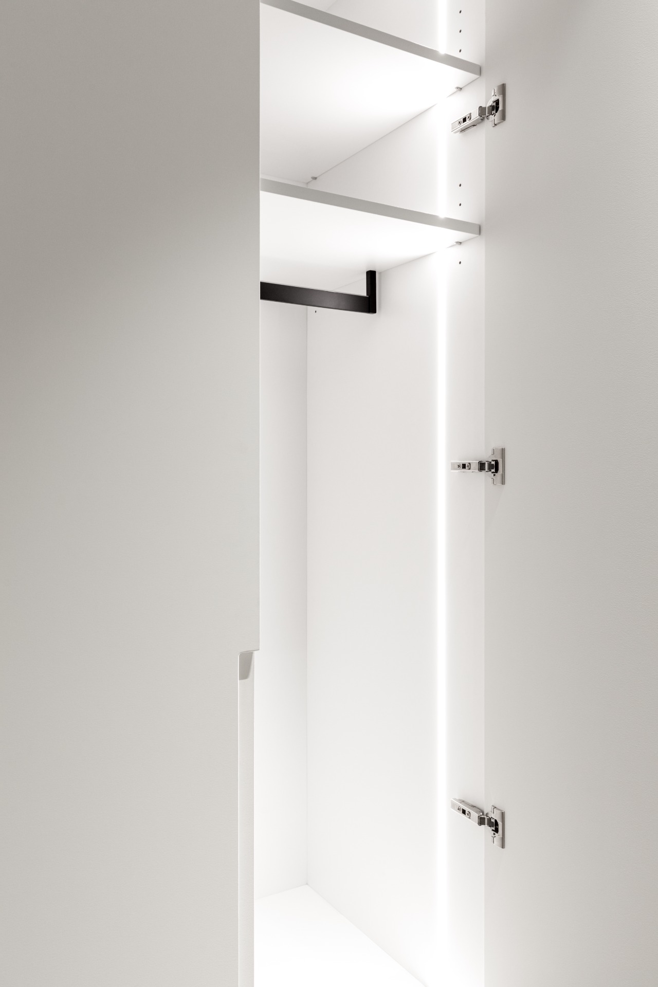 Breng licht en overzicht in uw kast met een geïntegreerde verticale LED-lijn. Zo creëert u voldoende helderheid, benadrukt u de indeling en combineert u functionaliteit met een verfijnde uitstraling.