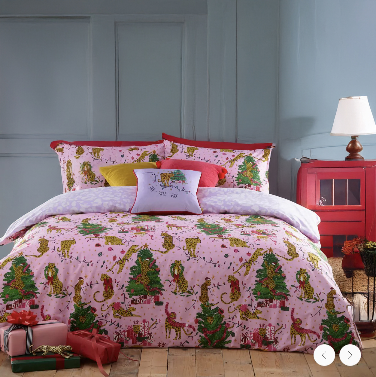 Breng deze feestdagen een speelse, feestelijke sfeer in je slaapkamer met de Purrfect Christmas Dekbedovertrekset. Met luipaarden die kattenkwaad doen, verpakt in klatergoud, en cadeautjes openen onder de boom. Deze opvallende print is compleet met een tonale achterkant met luipaardprint, waardoor je twee looks in één hebt!