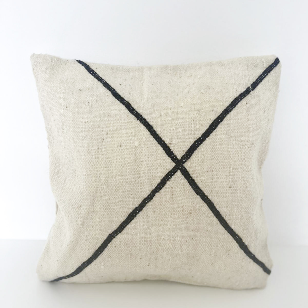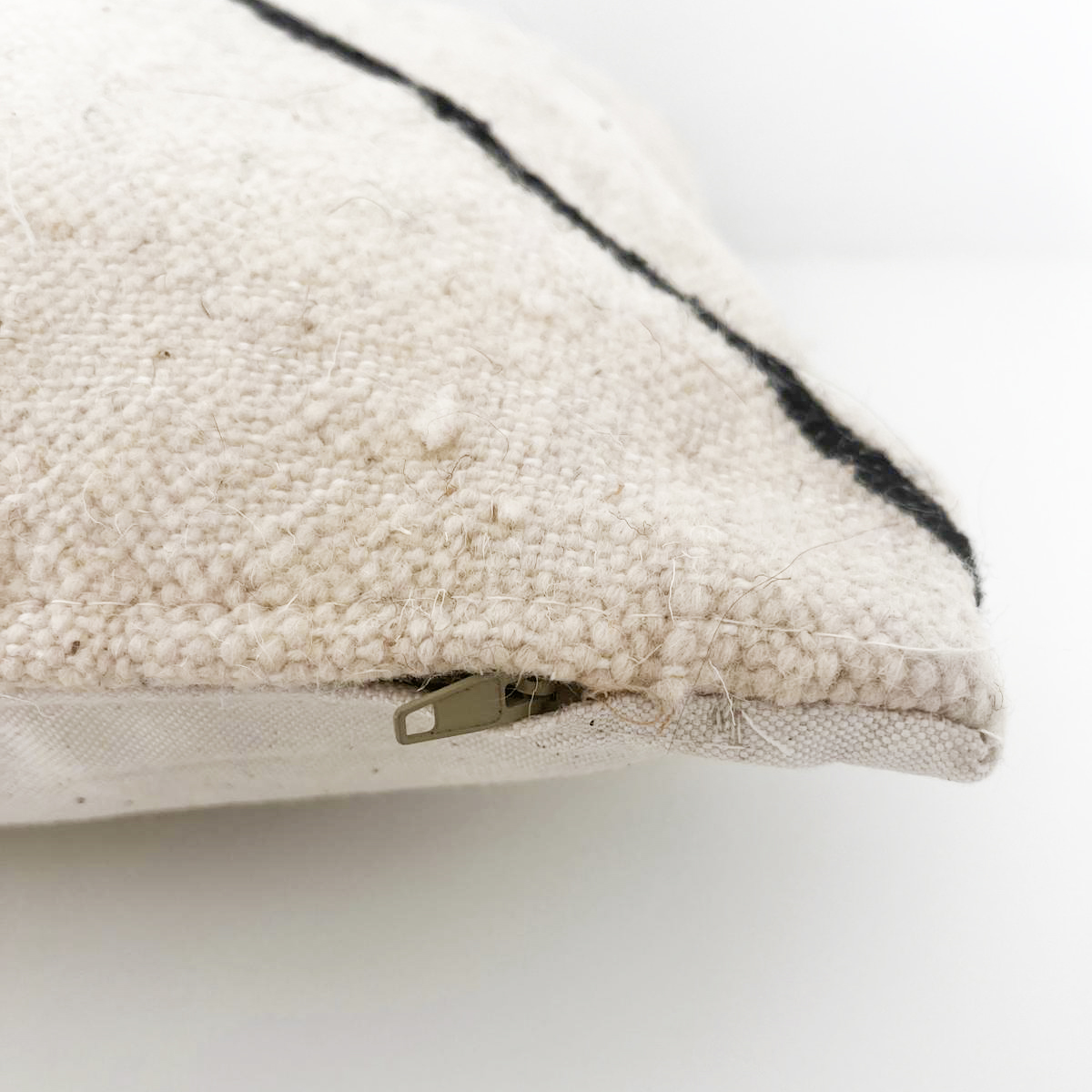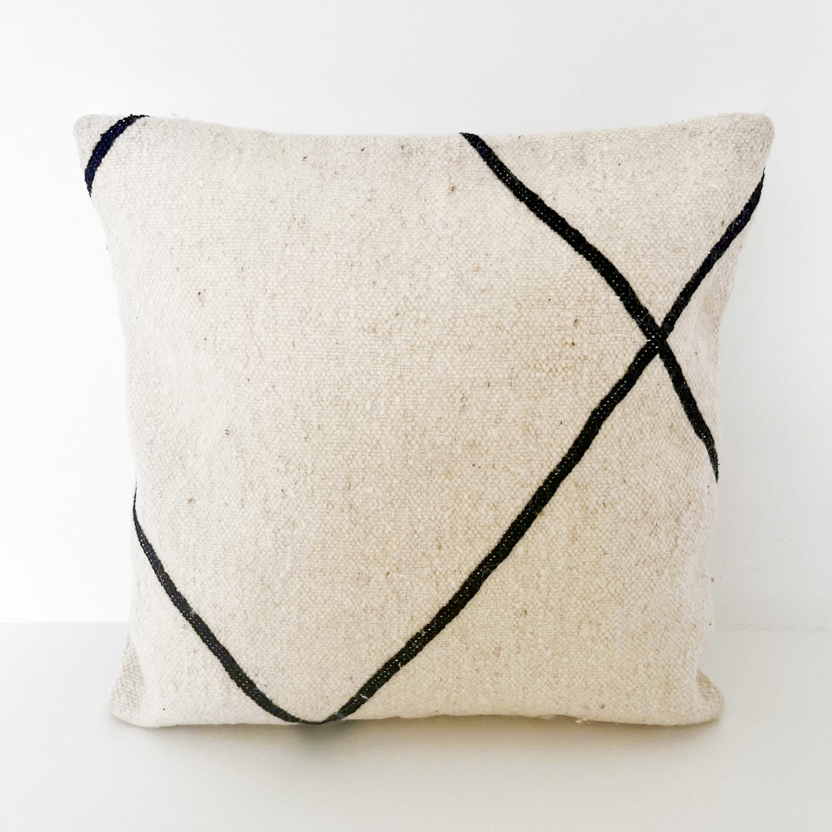 Breng een vleugje Marokko in huis met deze handgemaakte kelim kussens. Geïnspireerd op het traditionele Beni Ouarain-tapijt uit het Berberdorp in het Mid-Atlasgebergte, stralen ze de geometrische schoonheid en vakmanschap van de Berbers uit. Perfect voor wie houdt van grafische patronen zonder felle kleuren.