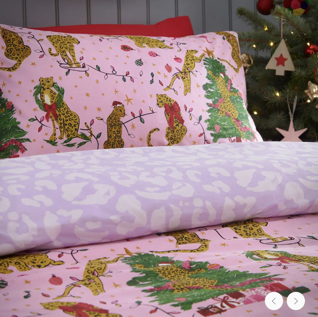Breng deze feestdagen een speelse, feestelijke sfeer in je slaapkamer met de Purrfect Christmas Dekbedovertrekset. Met luipaarden die kattenkwaad doen, verpakt in klatergoud, en cadeautjes openen onder de boom. Deze opvallende print is compleet met een tonale achterkant met luipaardprint, waardoor je twee looks in één hebt! Materiaal: 50% katoen, 50% polyester 230/230 50/75